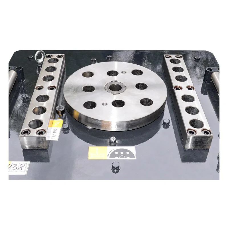 Электрический двигатель и редуктор приводят в движение рабочий диск. Арматура сгибается вокруг оси этого диска. Радиус, угол изгиба и форма корректируются при помощи втулок.