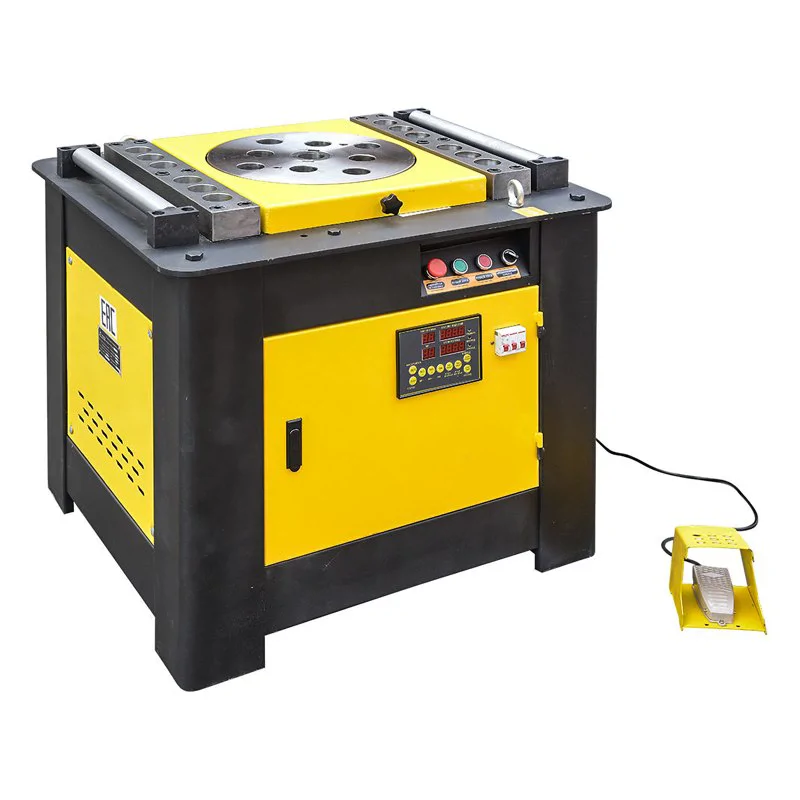 Станок для гибки арматуры ТСС GW 52 обладает двигателем мощностью 4 кВт и позволяет работать с арматурной сталью диаметром от 6 до 45 мм. Модель оснащена цифровой панелью управления, которая позволяет программировать рабочие параметры.
