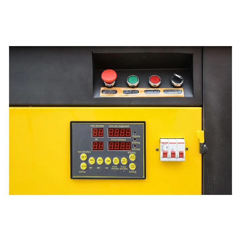 Для точной настройки рабочего процесса в модели предусмотрена цифровая панель управления. При помощи неё удобно задавать угол гибки арматуры и изменять его без регулировки планшайбы. Вы можете запрограммировать до 10 различных вариантов гиба, что особенно удобно при выполнении типовых задач на производстве.
