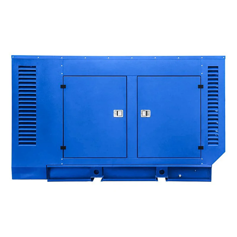 Шумозащитный кожух предназначен для защиты ДГУ от осадков, обеспечения безопасности работы и уменьшения уровня шума, исходящего от работающей ДГУ. Кожух изготавливается по раме дизель-генераторной установки из стального листа толщиной 1,5-2 мм с порошковым покрытием и дополнительным шумозащитным покрытием. Для проведения технического обслуживания кожух имеет дверцы с удобным замком. Напротив щита собственных нужд в створке двери кожуха имеется окно для визуального контроля за работой оборудования. Генераторную установку в шумопоглащающем кожухе можно эксплуатировать как в помещении, так и на улице при температуре окружающей среды от -25°С до +40°С.