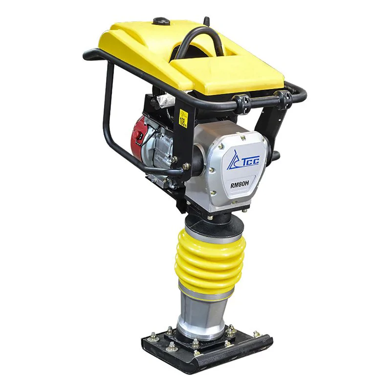 Бензиновая вибротрамбовка TSS RM80H обладает рабочей плитой площадью 345 х 290 мм. Модель подходит для уплотнения грунта траншей, краев тротуара, возле стен и фундаментов, а также других мест, где требуется малогаборитная техника.