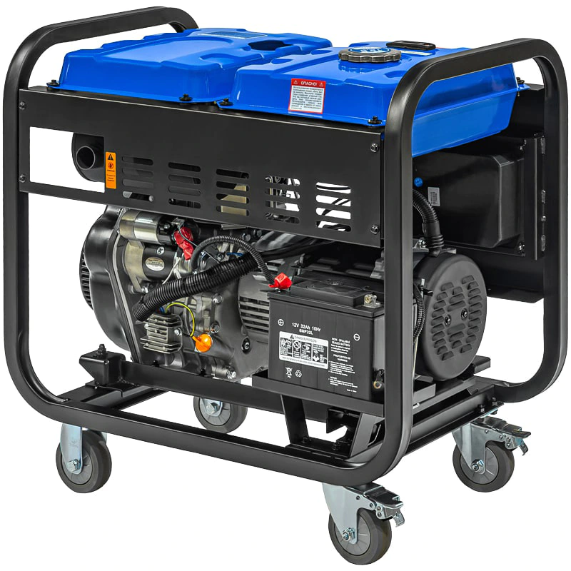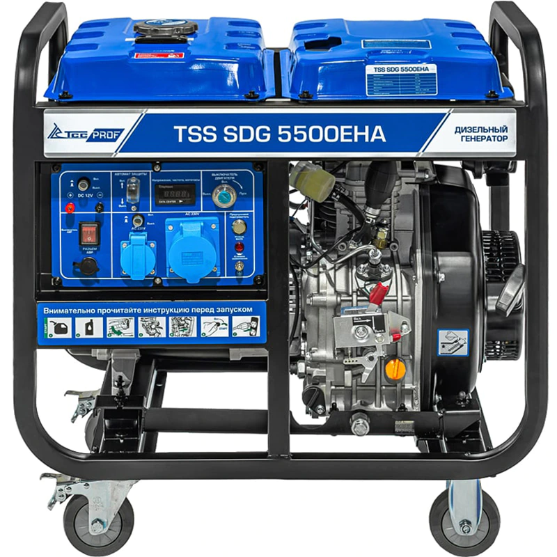 Дизельный генератор ТСС SDG 5500EHA — надежный источник резервного или основного электропитания мощностью 5 кВт, предназначенный для дач, строительных площадок, СТО и небольших предприятий. Модель оснащена 4-тактным дизельным двигателем мощностью 8,8 л.с., электростартером, предпусковым подогревом и топливным баком на 12,5 л, который обеспечивает до 8 ч непрерывной работы на одной заправке. Для подключения потребителей предусмотрены две розетки 220 В и выход 12 В. Дизель-генератор оборудован многофункциональным дисплеем, индикатором уровня топлива и выходом для подключения блока АВР. Наличие открытого кожуха и колес обеспечивает простоту обслуживания и удобство перемещения дизельного генератора.