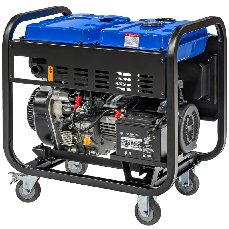 Дизель генератор с электростартом и с разъемом для подключения блока автоматики. ТСС SDG 6500EHА предназначен для выработки электроэнергии с основными характеристиками: напряжение - 230 вольт, частота 50 Гц и номинальной мощностью 6 кВт, оснащенный колесным комплектом для удобства передвижения.
