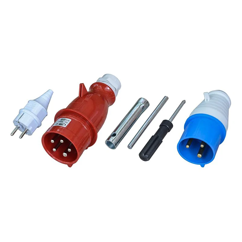 Трехфазный бензиновый генератор позволяет подключать оборудование, которое работает как от напряжения 220, так и 380 В. На корпусе есть несколько розеток. Два выхода на 220 В: один на 16 А, а другой на 32 А. А также промышленная розетка на 380 В 32 А.