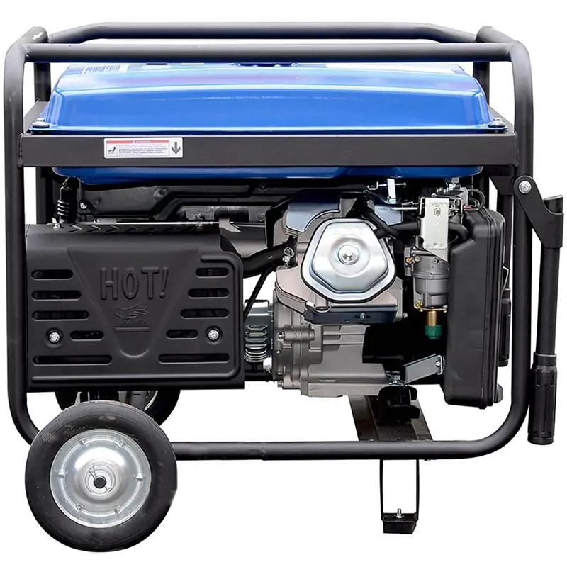 Электрические розетки имеют крышки для защиты от влаги и пыли. Колеса облегчают перемещение электростанции. Благодаря прочной стальной раме двигатель надежно защищен от механических внешних воздействий.