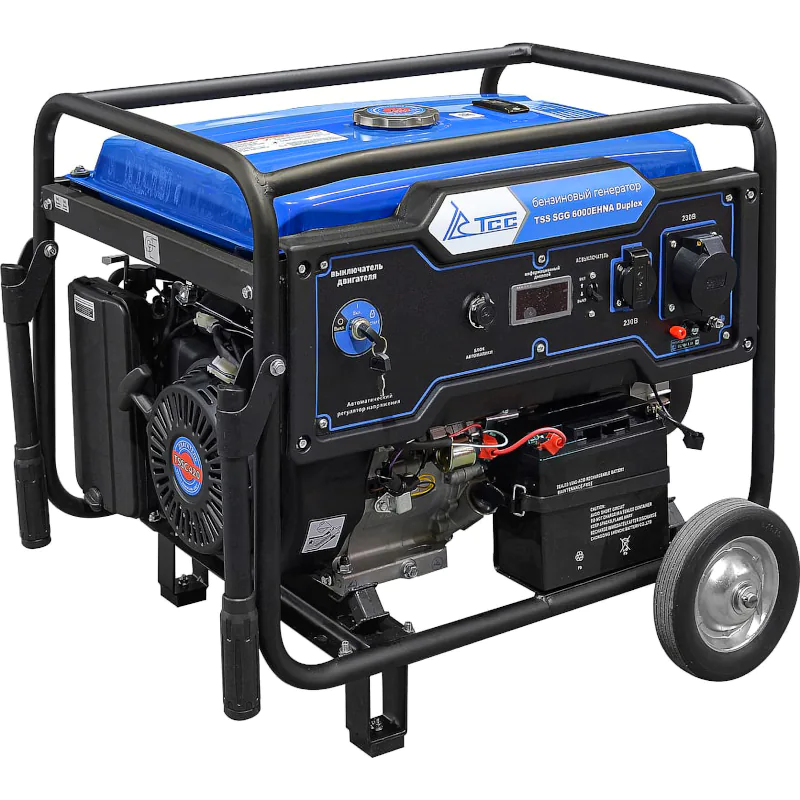 Бензиновый генератор ТСС SGG 6000EHNA Duplex номинальной мощностью 6 кВт – простой в использовании и компактный аппарат для питания однофазных потребителей. К главным достоинствам модели относится электростартер, автоматический регулятор напряжения, а также возможность подключения блока автоматического запуска (ATS).