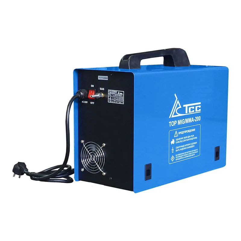 Полуавтомат инверторного типа TSS TOP MIG/MMA-200 для полуавтоматической сварки в среде защитного газа (MIG/MAG), сварки порошковой проволокой (FCAW) и ручной дуговой сварки (ММА).
