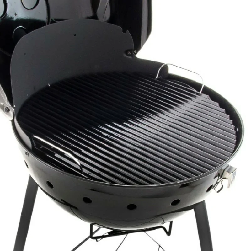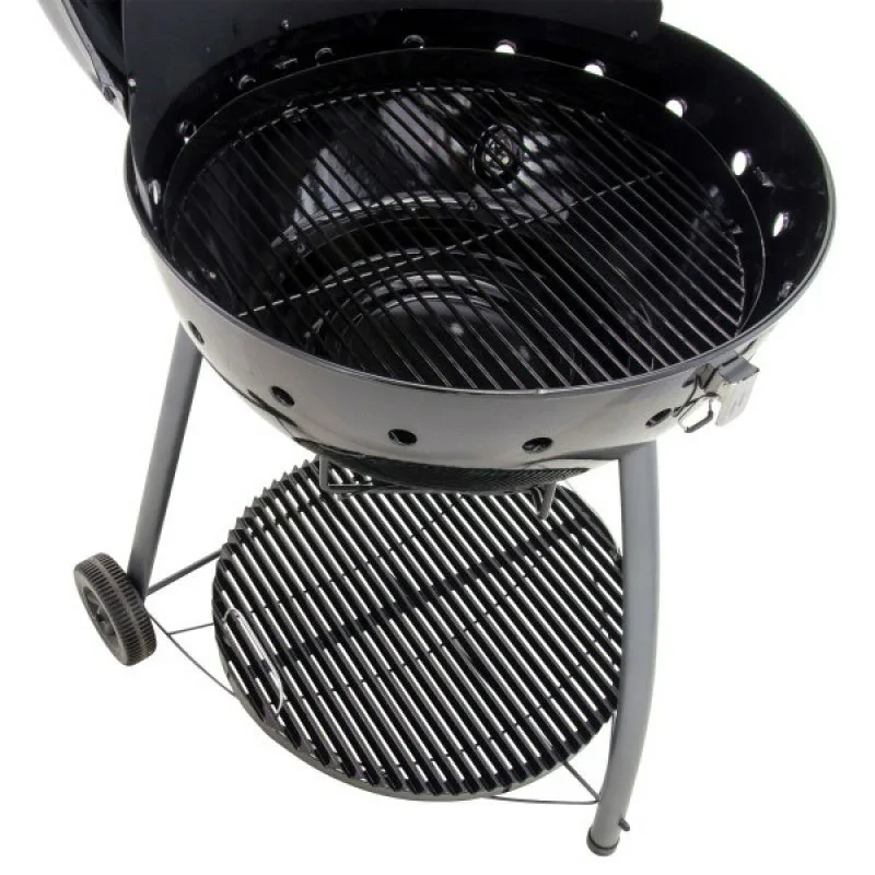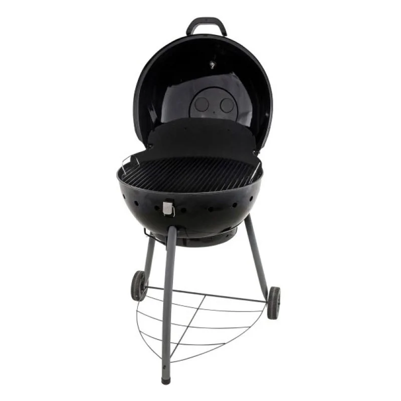 Угольный гриль Char-Broil Kettleman с решеткой из жаропрочной стали и с покрытием из термостойкой эмали рассчитан на длительный срок службы. Особая конструкция решетки позволяют мясу оставаться максимально сочным. Для большего удобства перемещения по участку предусмотрены колеса.