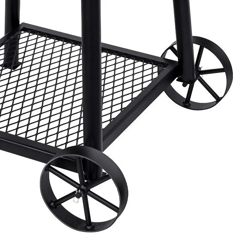 Два массивных металлических колеса помогут вам при необходимости перемещать угольный гриль Oklahoma Joe's Blackjack по ровной поверхности. Делайте это только когда он холодный, чтобы не обжечься.
