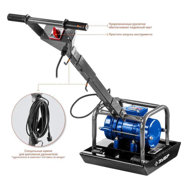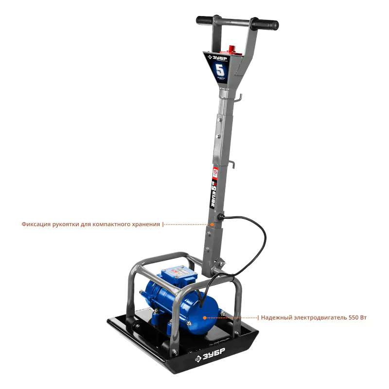 Виброплита ЗУБР ЗВПЭ-5 Г мощностью 550 Вт подходит для обработки материалов из асфальта, бетона и грунта. Центробежная сила составляет 5 кН, что обеспечивает быстрое и качественное уплотнение.