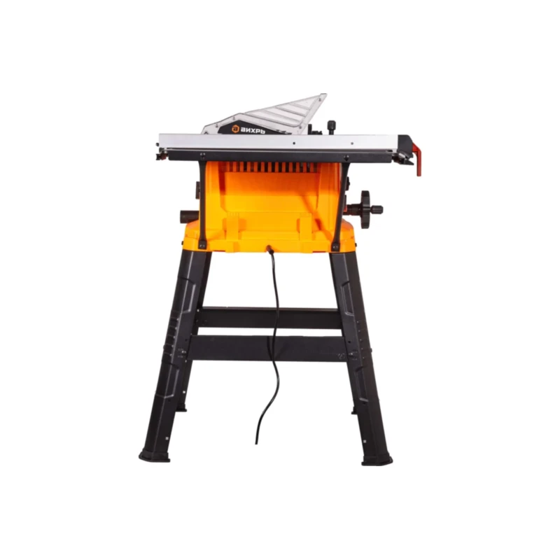 Станок Вихрь ЦРС-255 поставляется в разобранном виде. В комплект входят станина с крепежом, резиновые амортизаторы для ножек, защитный кожух диска, параллельный упор с металлической планкой, угловой упор-транспортир, толкатель для безопасной подачи коротких заготовок, расширительные элементы стола с опорами, измерительные линейки-направляющие, монтажные ключи и паспорт изделия. Сборка выполняется за 15–20 минут, все узлы стыкуются точно, крепеж идет в комплекте. После установки станок устойчиво стоит на четырех точках, резиновые накладки предотвращают скольжение по полу.