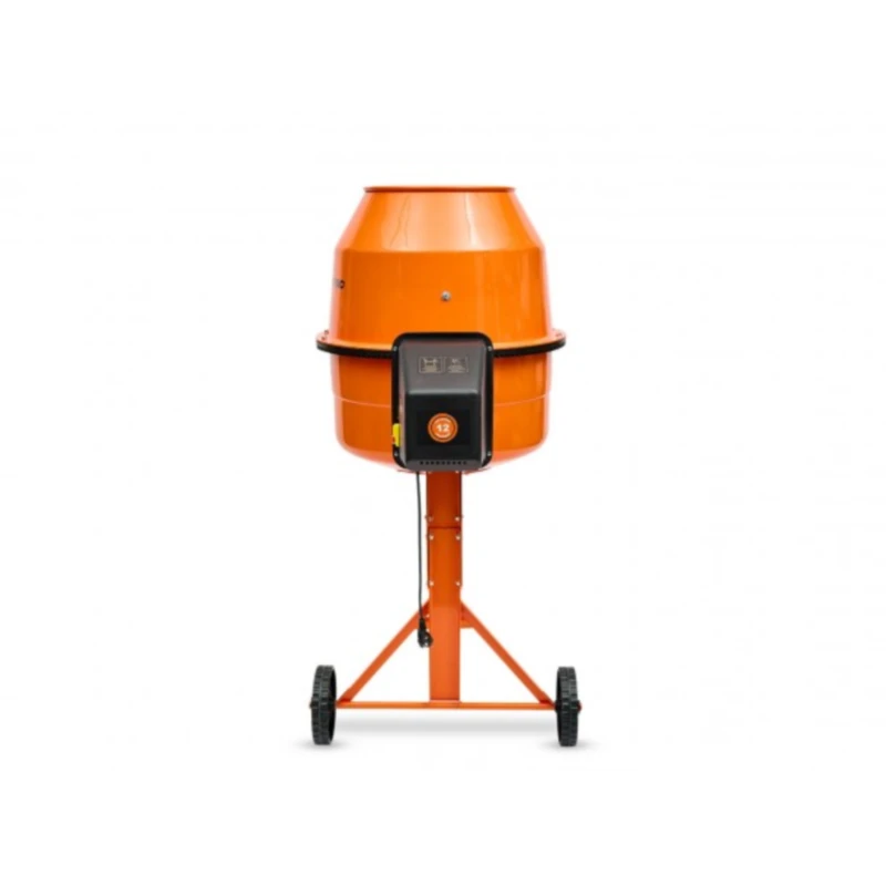 Электропитание осуществляется от сети 220В, 50Гц. Бетоносмеситель оснащен 7 уровнями фиксации положения ёмкости, а ножной режим фиксации барабана позволяет освободить руки для удобной выгрузки и дозированной подачи раствора. Крепление лопастей к корпусу осуществляется при помощи болтовых соединений, которые обеспечивают надежность в эксплуатации.