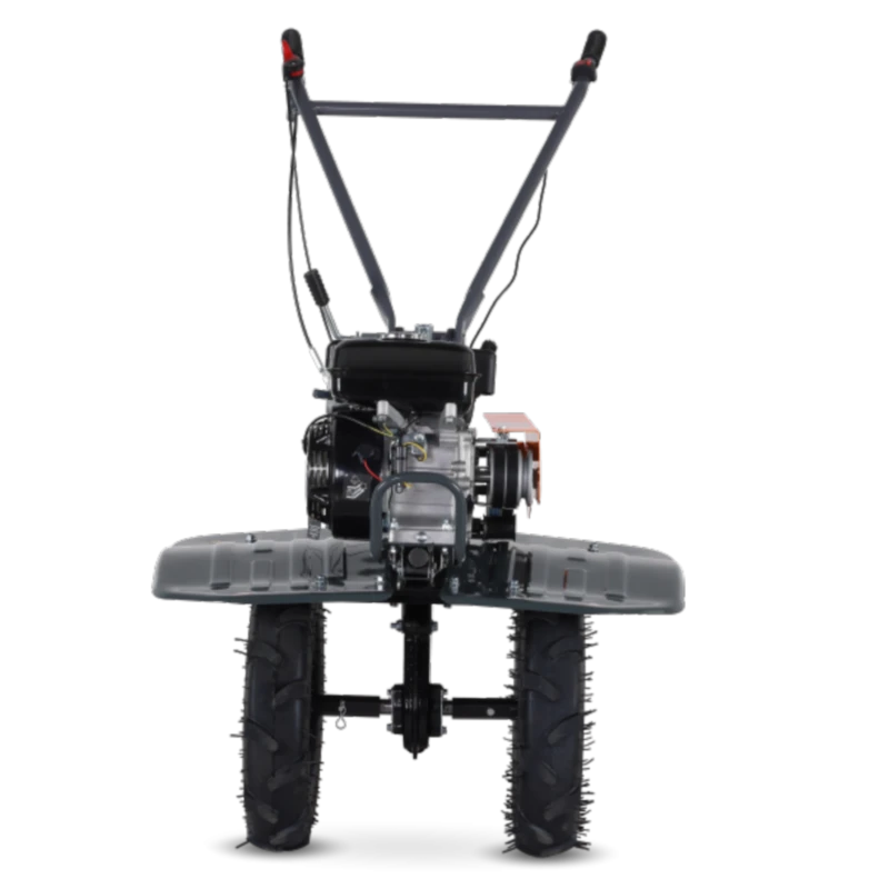 - Широкие крылья и рукоятка для перемещения: защищают от попадания земли при работе, а рукоятка позволяет передвинуть мотоблок.