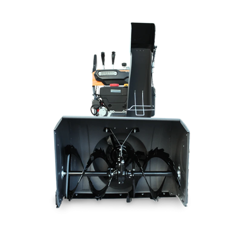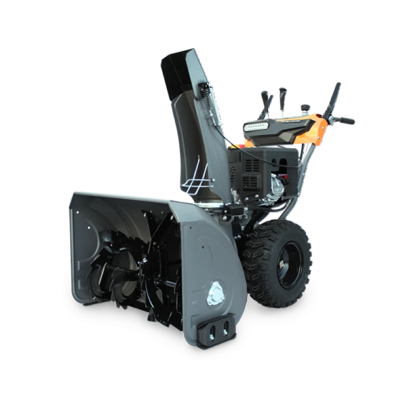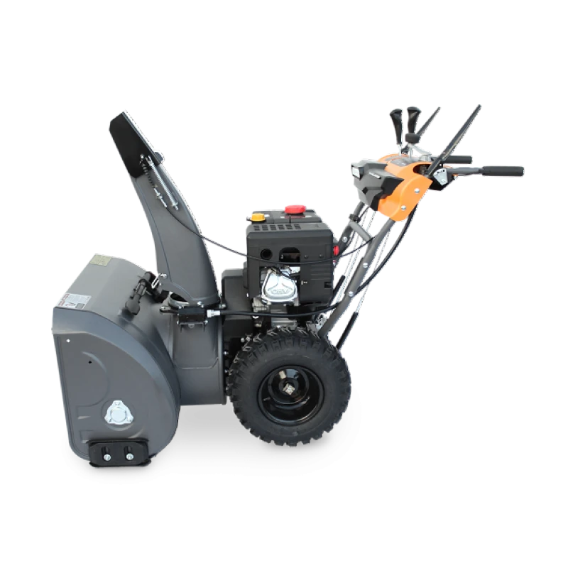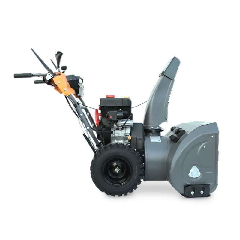 Снегоуборочный ковш изготавливается из стали толщиной 2 мм и усиливается ребрами жесткости. За счет этого выдерживает большие нагрузки. Ширина захвата снега – 76 см, дальность выброса до 15 м. Колеса большого диаметра, изготавливаются из эластичной резины, устойчивой к сильным морозам. Имеет функцию автоматической разблокировки дифференциала, которая повышает маневренность машины.