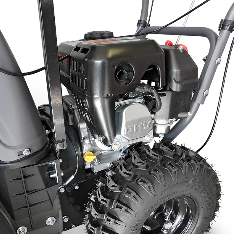 В снегоуборщике VILLARTEC WB5561P установлен 4-тактный двигатель мощностью 5,5 л.с. Морозоустойчивый мотор запускается при температуре до -30 °C. Мощность двигателя обеспечивает большую дальность выброса, что удобно при работе на обширных участках. Направление разгрузочного желоба удобно менять с помощью рычага на панели управления. Для максимально длительного срока службы ковш изготовлен из стали толщиной 2 мм.