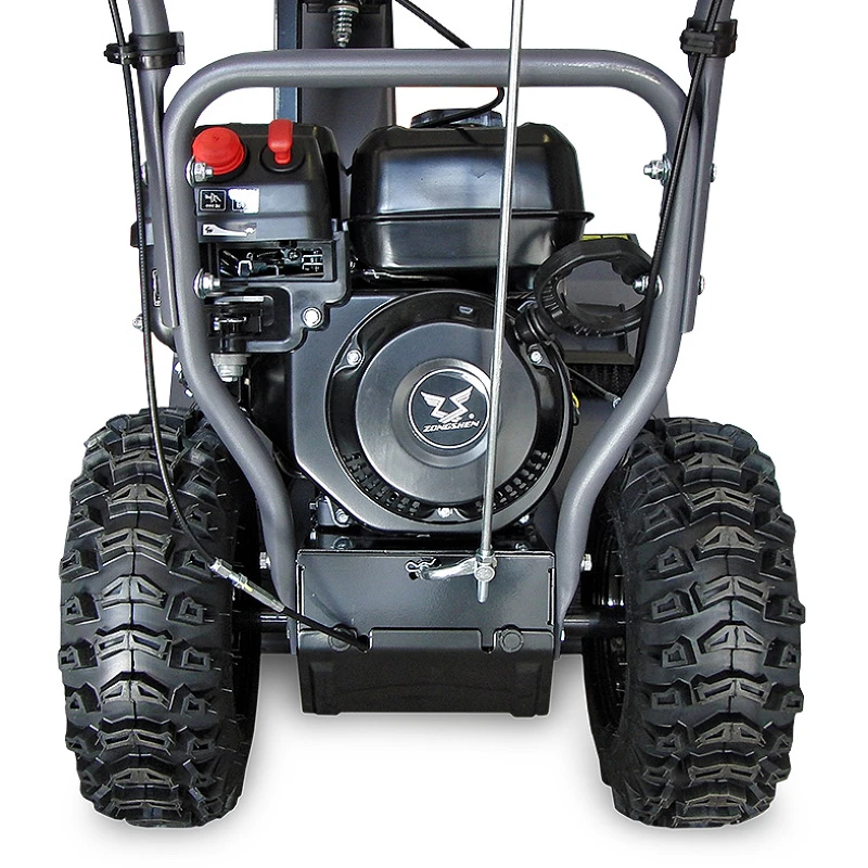 С самоходным снегоотбрасывателем вам не понадобится прикладывать усилия для уборки территории — достаточно задавать направление движения рукояткам и выбирать оптимальный темп работы. Бензиновый снегоуборщик поддерживает четыре передние передачи. Включив задний ход машину легко извлечь из сугроба, развернуть на узком участке и припарковать.