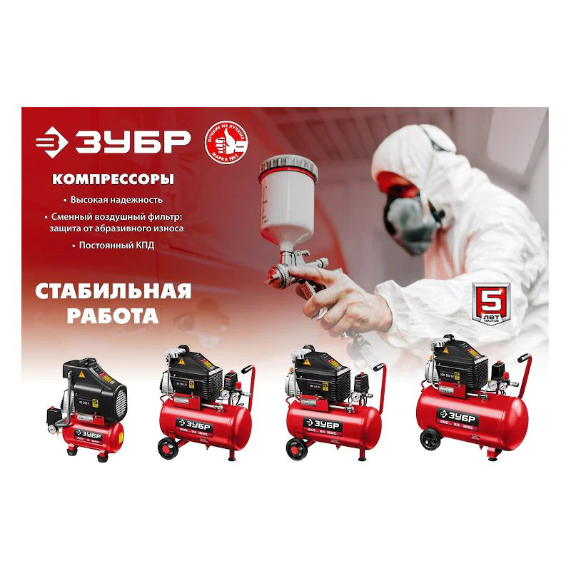 Воздушный компрессор ЗУБР КПМ-260-50 из серии «Мастер» нагнетает в пневмоинструмент сжатый до 8 атм воздух с производительностью до 260 л/мин. Модель с ресивером объемом 50 л используется с краскопультами, пневматическими гайковертами, устройствами для накачки, продувки и прочим оборудованием.