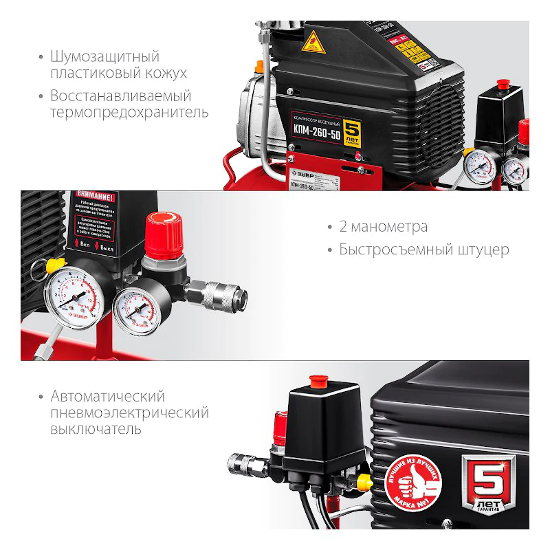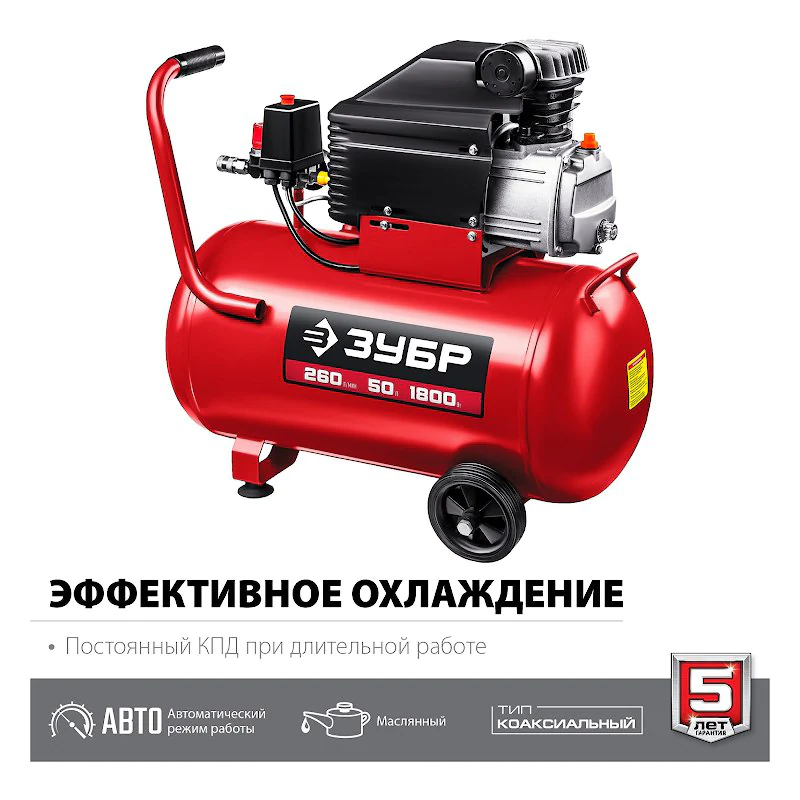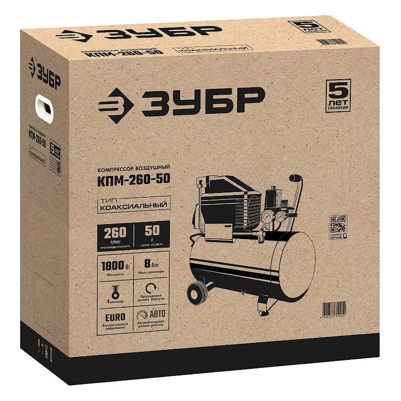 Воздушный компрессор ЗУБР КПМ-260-50 серия "Мастер"