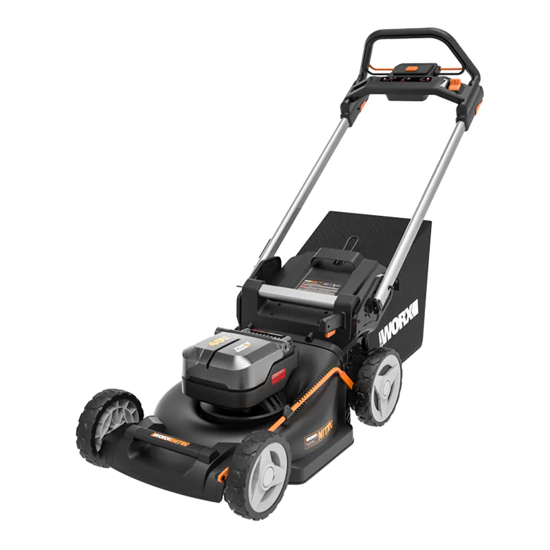Аккумуляторная газонокосилка WORX WG749E — самоходная модель с функцией мульчирования и травосборником емкостью 55 литров. Машина отличается высокой производительностью благодаря ширине скашивания 46 см и мощным аккумуляторам. На одном заряде можно обработать участок площадью до 5 соток. Газонокосилка получает питание от двух Li-Ion 20-вольтовых аккумуляторов емкостью 4 Ач, которые включены в комплект поставки и подходят к другим беспроводным инструментам производителя.