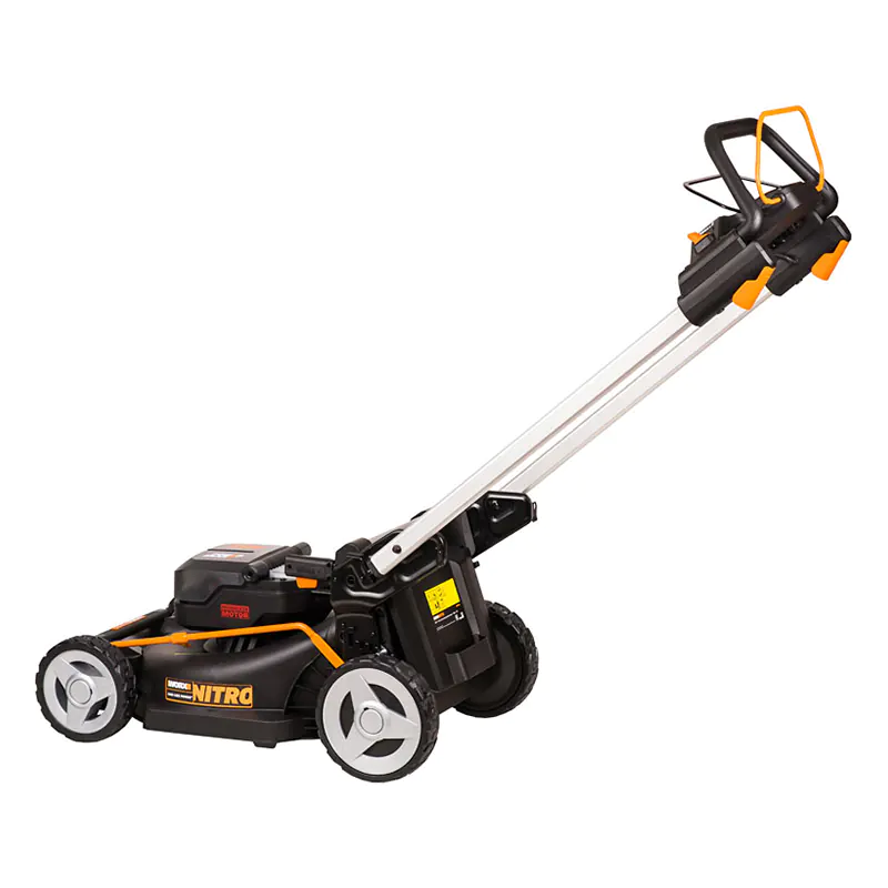 Самоходная аккумуляторная газонокосилка WORX оснащена регулятором скорости. Вы можете выбрать комфортный для себя темп перемещения и работать, вдыхая свежий воздух без примеси выхлопных газов. Два прижимных рычага отвечают за управление приводом на колеса и включение режущего механизма. Высота среза легко регулируется путем перестановки одного рычага.