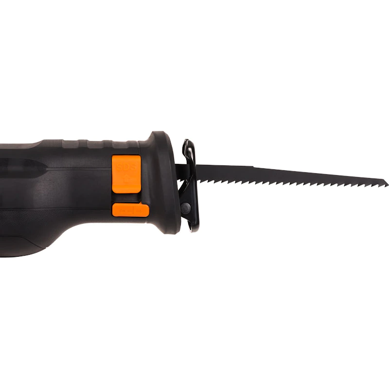Режущая оснастка сабельной пилы легко меняется без применения ключей. Компактные габариты и рукоятка с нескользящими резиновыми вставками обеспечивает комфортную работу с инструментом.