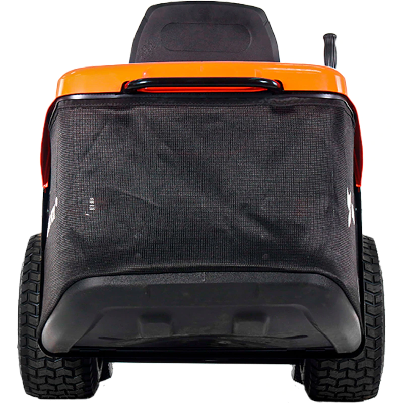 Вместительный 245-литровый травосборник облегчает сбор скошенной травы. Механизм мульчирования измельчает отходы для выброса в качестве удобрения. Движение производится при помощи крупных проходимых колес с протектором. Агрегат обеспечивает быстрый уход за территорией максимальной площадью 5000 м². Способен работать в переднем и заднем направлении. Оператор размещается в удобном кресле с рулевым колесом и панелью управления.