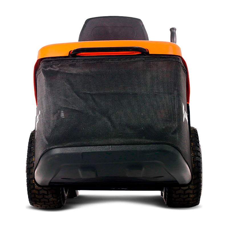 Ширина режущей деки составляет 86 см, с возможностью настройки высоты среза травы в диапазоне от 30 до 90 мм, предлагая семь положений. В комплектацию входят травосборник объёмом 245 литров, задний дефлектор для выброса травы и комплект для мульчирования. Также предусмотрен фаркоп, расширяющий функциональные возможности трактора.