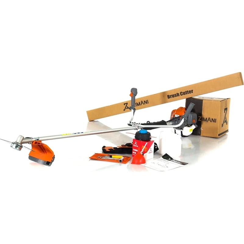 Профессиональный бензиновый триммер ZimAni 143RII легко косит газон, высокую траву, крупные сорняки, молодую поросль деревьев или кустов.