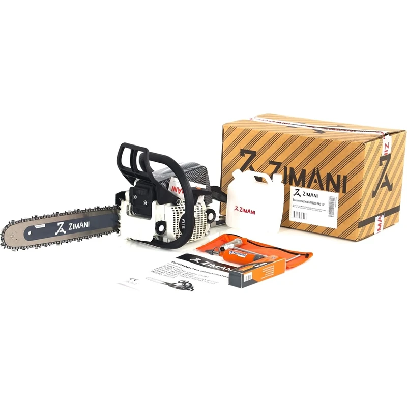 Бензопила ZimAni MS250PRO мощностью 3 л.с. / 2,2 квт с объемом двигателя 45,2 куб.см. Данная модель идеально подходит для ухода за садом, для заготовки дров, при выполнении строительных работ и будет незаменимым помощником для любителей охоты и рыбалки. Так же можно использовать для валки деревьев диаметром до 30 см. Цепная пила одна из самых легких в своем классе, удобная в использовании, подходит как для профессионалов, так и для обычного пользователя. Простая и в то же время надежная конструкция, обладает отличной сбалансированностью и эргономичностью. В конструкции пилы использован пластик, стилизованый под карбон, что придает пиле необычный современный вид.