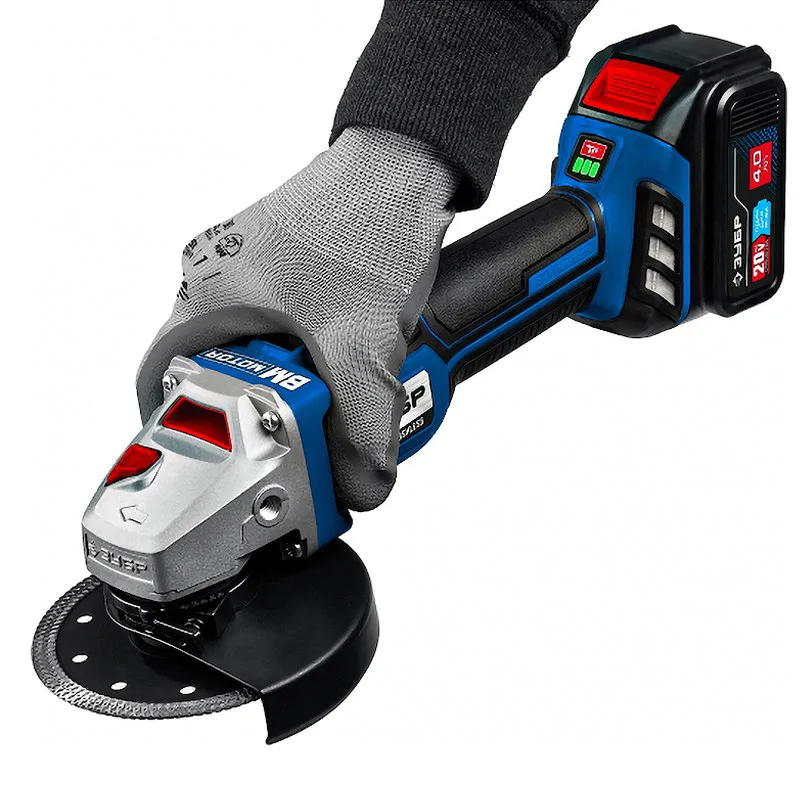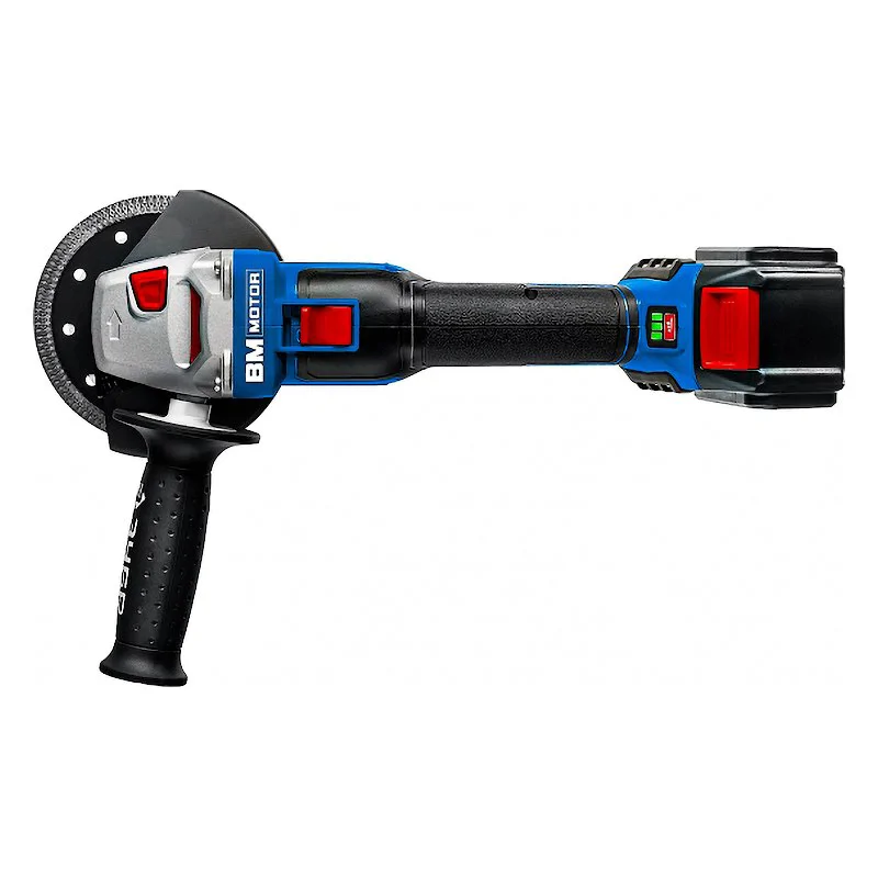 Аккумуляторная болгарка оснащена двигателем Brushless, который в отличие от щеточных моторов, обладает повышенным в 2 раза крутящим моментом, большим КПД и низким потреблением энергии. Помимо этого, отсутствует образование искр из-за трущихся деталей в конструкции.