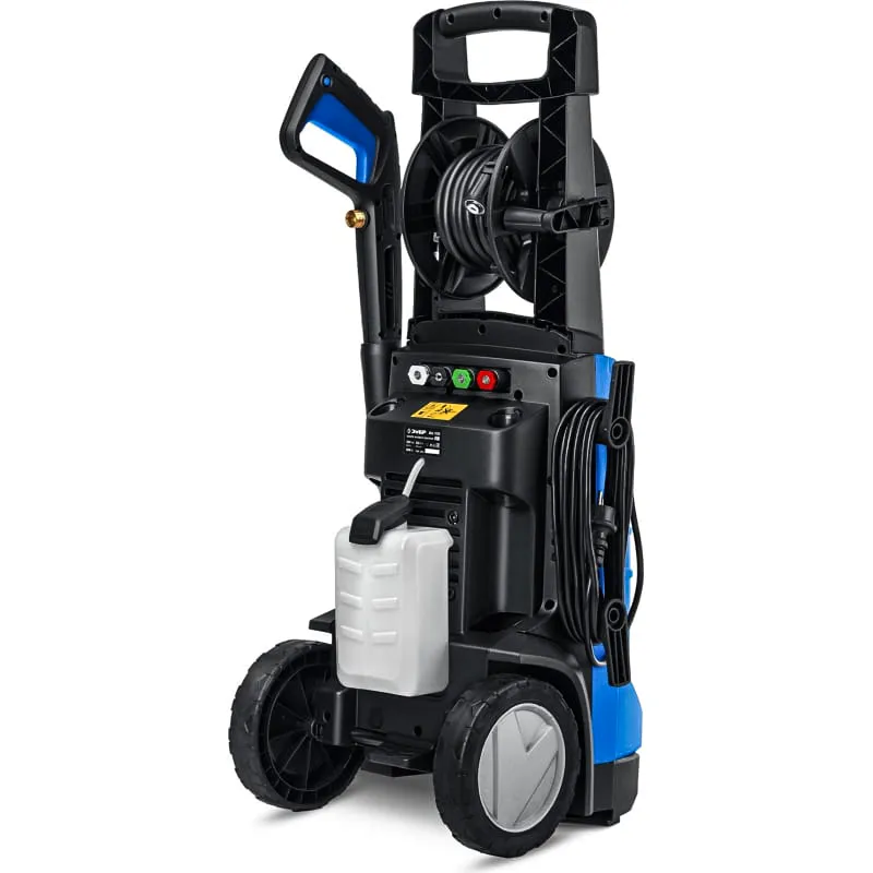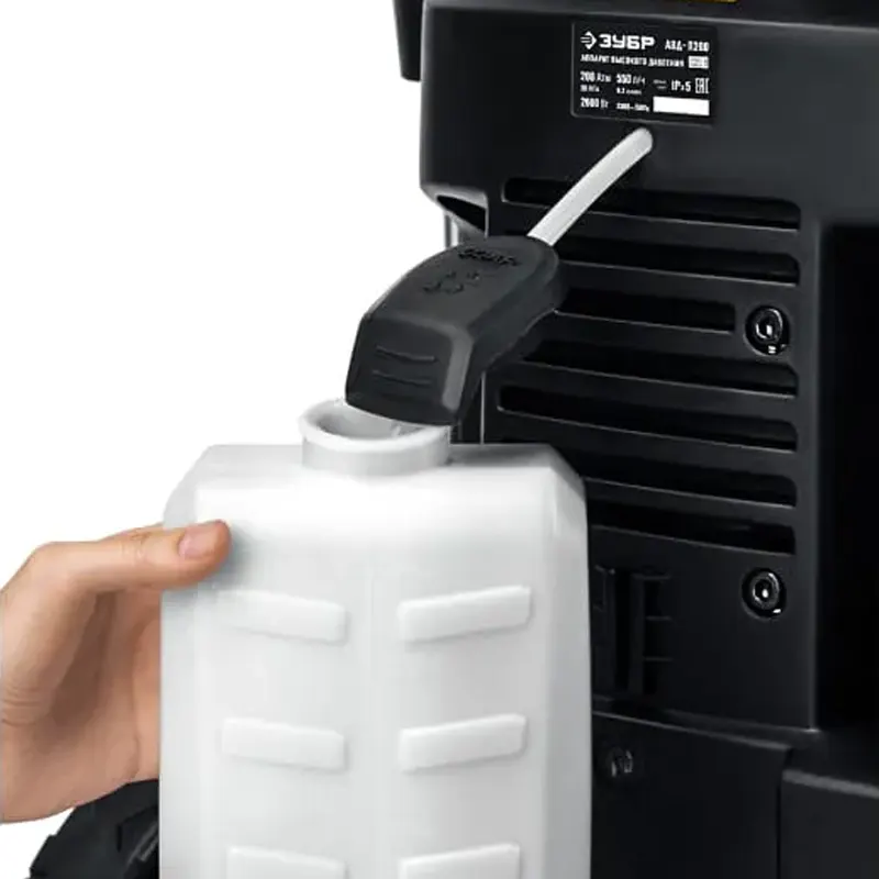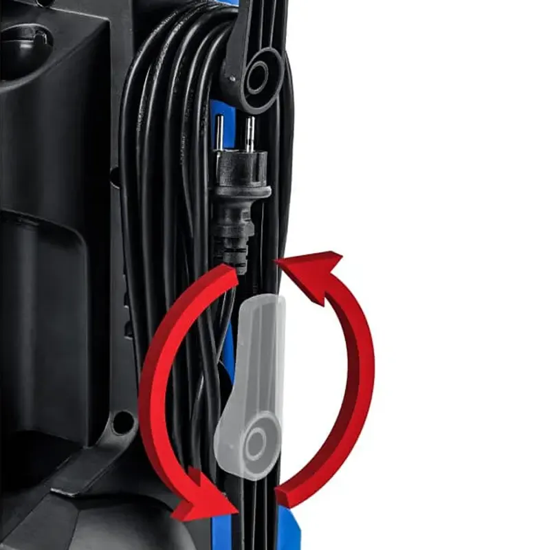 В конструкции мойки ЗУБР АВД-П200 продуманы места для хранения принадлежностей, чтобы они не терялись и всегда были под рукой. Барабан для намотки шланга обеспечивает его аккуратное хранение и сохранность в исправном виде.