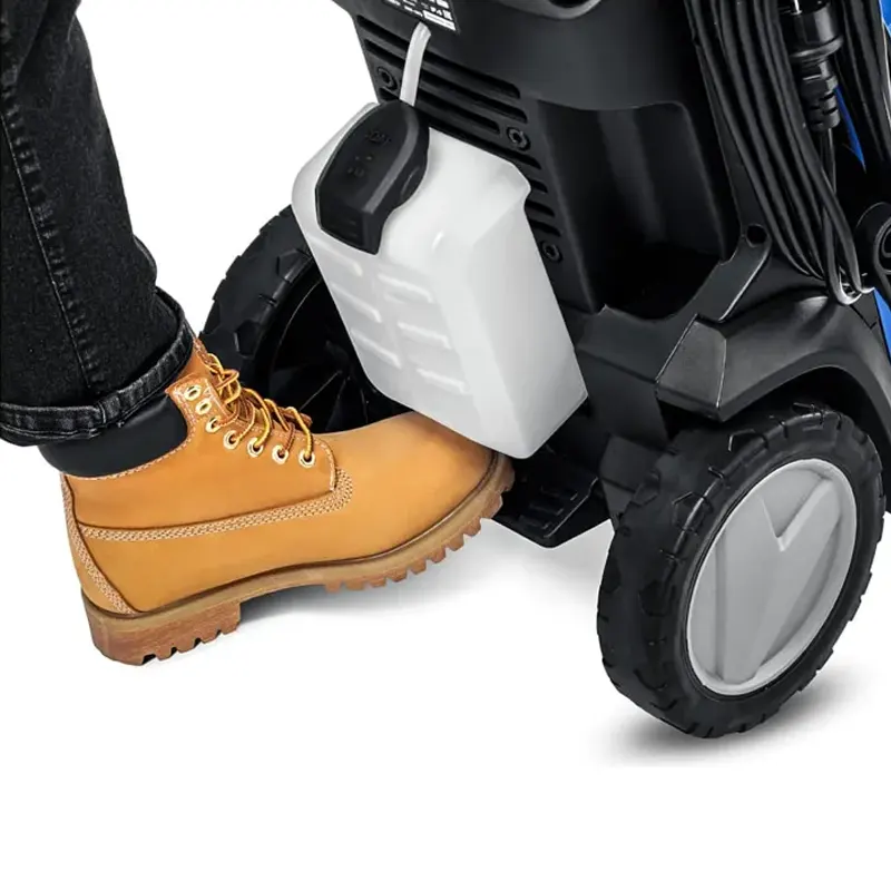 С помощью минимойки вы быстро очистите поверхности транспортных средств, садового инвентаря, стен дома или теплиц при малом расходе воды и электроэнергии. Вы можете нанести предварительно моющее средство из встроенного бачка, чтобы затем легко смыть грязь.