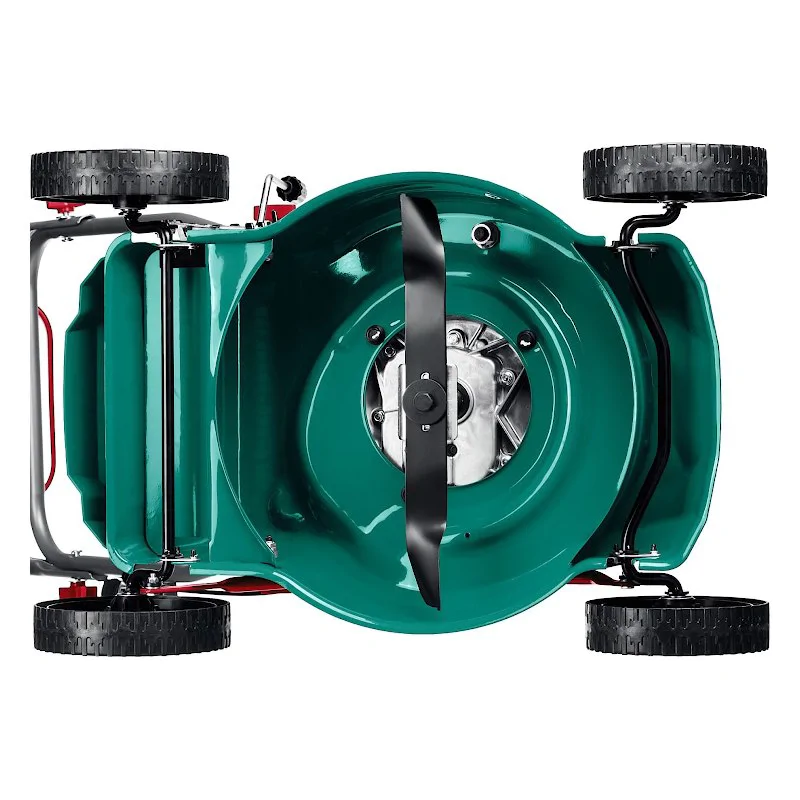 - Колеса увеличенного диаметра на подшипниках и эргономичная рукоятка облегчают перемещение косилки по газону;