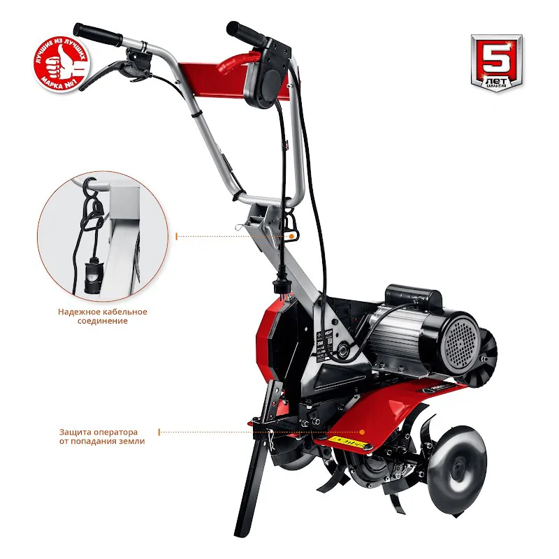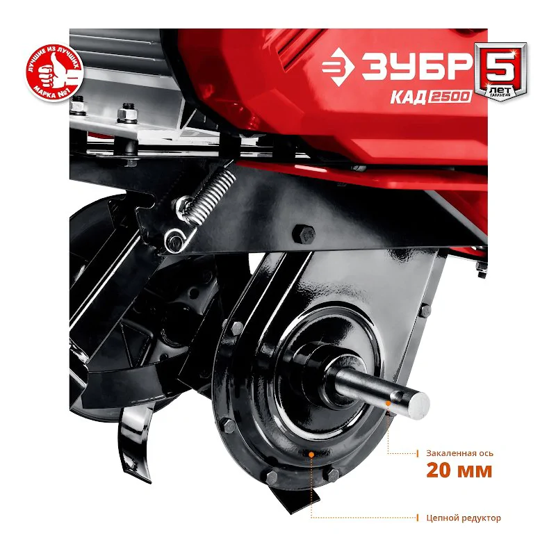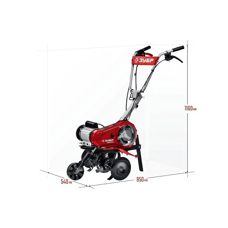 Культиватор электрический ЗУБР КАД-2500 не выделяет вредных выхлопных газов, если сравнивать с бензиновыми аналогами. Двигатель мощностью 2500 Вт подходит для работы на участках площадью до 1000 м².
